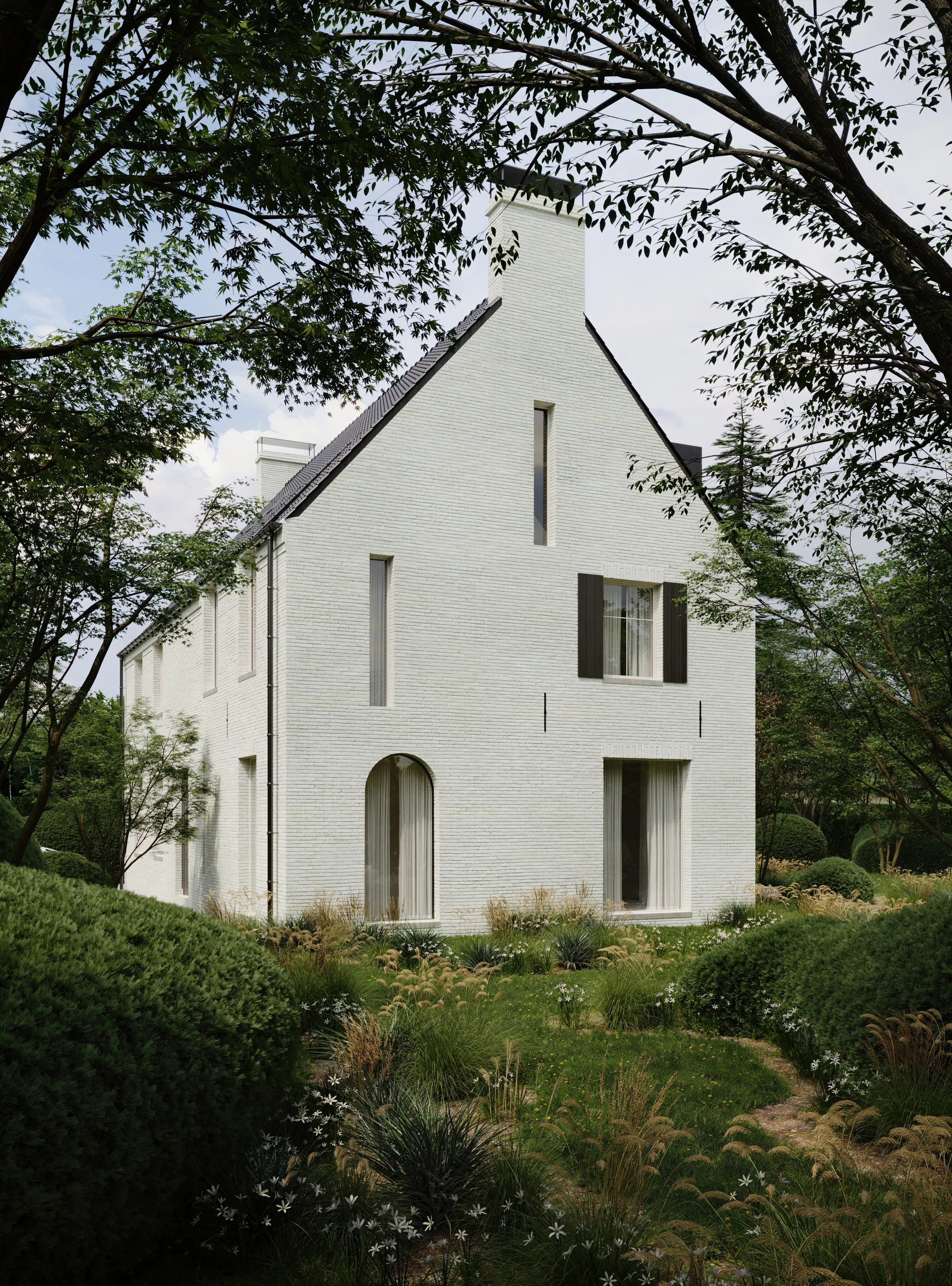 A complete transformation of an existing house in Brasschaat into a classic contemporaty family residence. The façades have been redesigned to align with the classical rhythm and proportions of traditional architecture. This refined, stately design is complemented yet modern, with some narrow glass elements that introduce a playfull touch in the design. The home has expanded at the rear, creating a spacious living kitchen that strengthens the connection between indoors and outdoors, highlighted by a large folding window system.