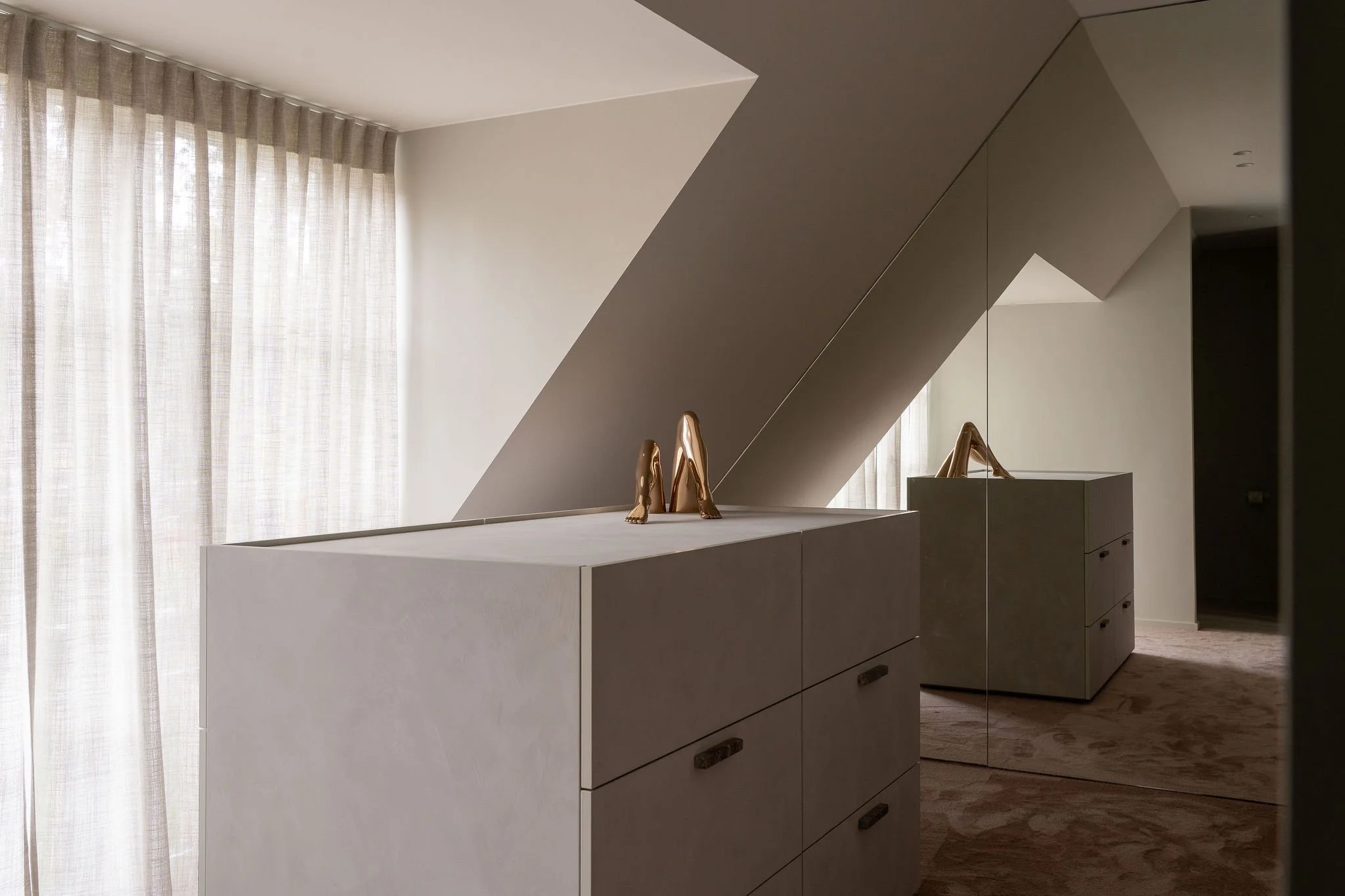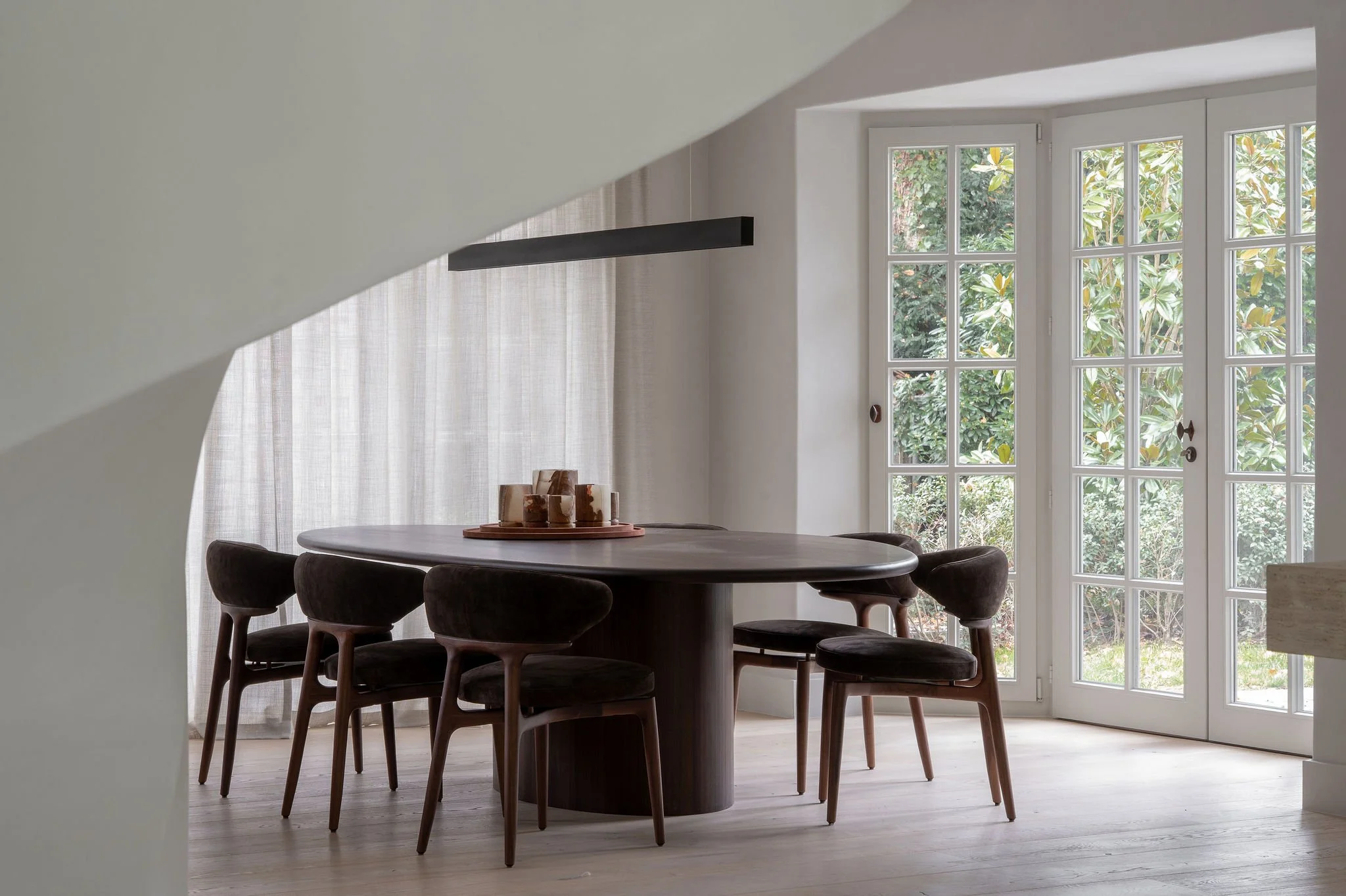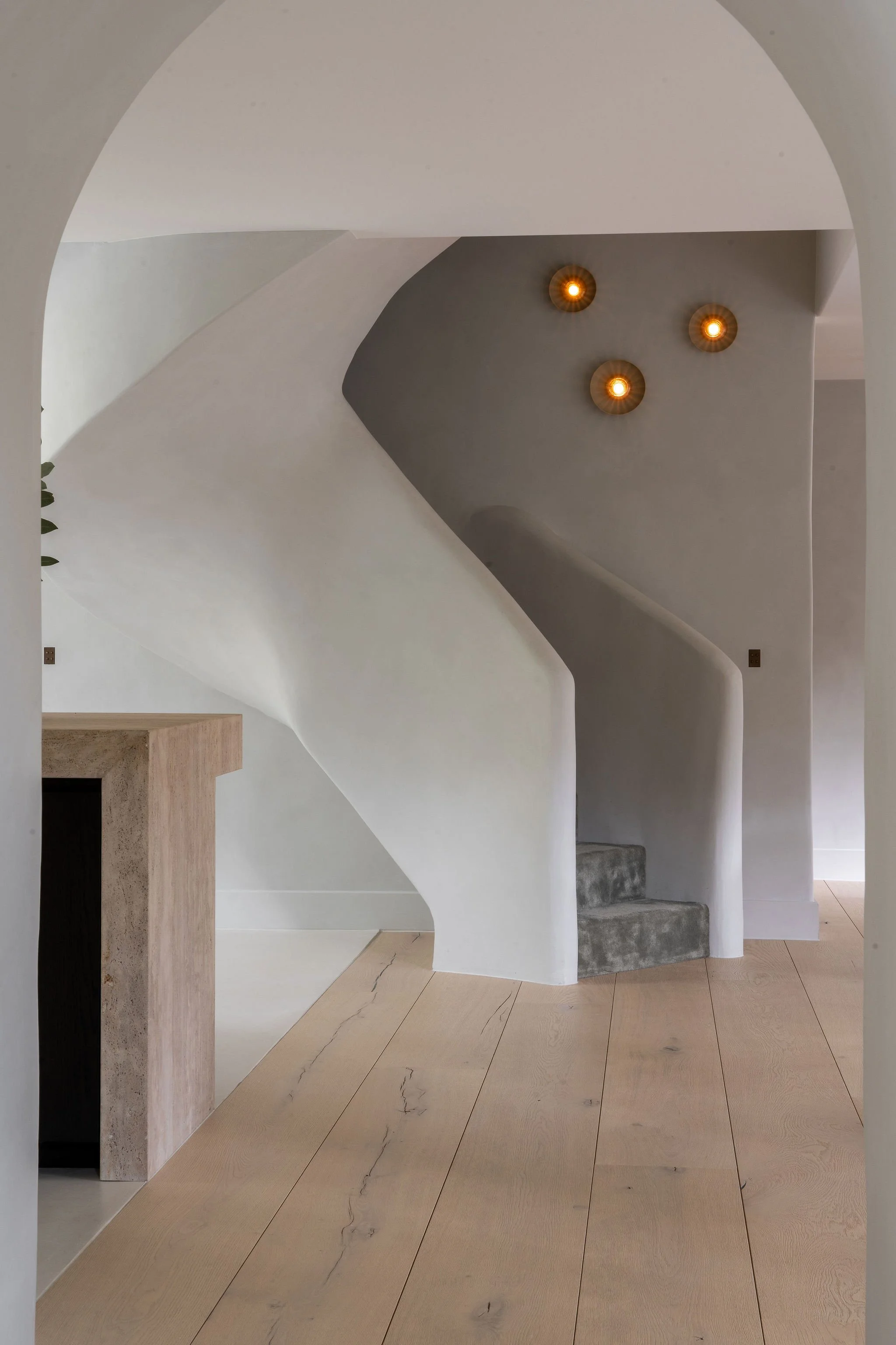 Complete renovation of a manor family residence. The existing elements of the façade have been strengthened and distilled into their purest form. The home has been opened up with the addition of a central spiral staircase as a striking focal point. Round openings between rooms enhance the flow, while luxurious materials elevate the entire space to refined luxury. Bold materials and attention-grabbing details bring an edgy yet sophisticated feel, transforming the villa into a warm and inviting family home for a young family, ready for hosting.
